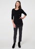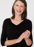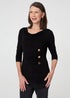 Izabel London Black Button Detail Ruched 3/4 Sleeve Top