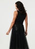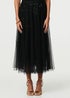 Izabel London Black Embellished Mesh Layer Midi Skirt