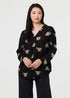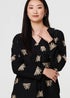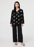 Izabel London Black Embroidered Pleat 3/4 Sleeve Blouse