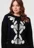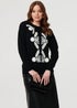 Izabel London Black Embroidered Print Drop Shoulder Jumper
