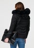 Izabel London Black Faux Fur Hooded Zip-Up Puffer Jacket