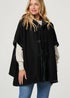 This poncho is as elegant as it is cosy. It features a super-soft faux fur lining and a spacious hood, with 1/2 sleeves and a boxy shape. It fastens with buckles on the front and has a longline fit. Wear it over formal or smart outfits to stay warm on a chilly day.