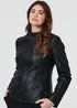 Izabel London Black Faux Leather High Neck Zip Front Jacket