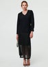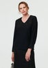 This elegant top is finished with beautiful floral embroidered details and dainty sparkle embellishments. It has a v-neck, long sleeves and a relaxed fit. Style as part of an all-black evening outfit at your next event.