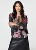 Izabel London Black Floral Long Puff Sleeve Pleated Blouse