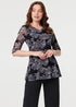 Izabel London Black Floral Relaxed Semi Sheer Peplum Blouse
