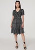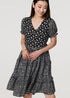 Izabel London Black Floral Short Sleeve Tiered Skater Dress
