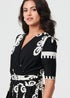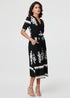 Izabel London Black Ikat Print 1/2 Sleeve Wrap Midi Dress