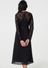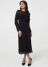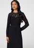 Izabel London Black Lace Trim Pleated Long Sleeve Midi Dress