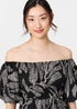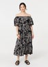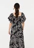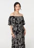 Izabel London Black Leaf Print Puff 1/2 Sleeve Midi Dress