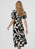 Izabel London Black Leaf Print Puff Sleeve Wrap Midi Dress