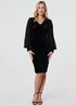 Izabel London Black Long Balloon Sleeve Knee Length Dress