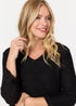 Izabel London Black Mesh Texture 3/4 Sleeve Relaxed Top