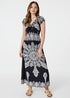 Izabel London Black Mosaic Print Cap Sleeve Maxi Dress