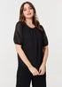 Dress for a day at the office or another smart dress-code occasion with this comfortable blouse. It's made from a glittery embellished material with a semi sheer texture, complete with sheer 1/2 puff sleeves and a layered hem. The ruched detail around the neckline will flatter your figure too. Wear this blouse with smart trousers or skinny jeans.