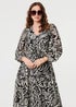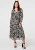 Izabel London Black Printed Layered Long Sleeve Maxi Dress