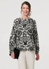 Izabel London Black Printed Long Sleeve Button Front Blouse