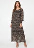 Izabel London Black Printed Long Sleeve Layered Maxi Dress