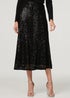 Izabel London Black Sequin High Waist Semi Sheer Midi Skirt