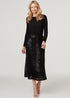 Izabel London Black Sequin High Waist Semi Sheer Midi Skirt
