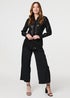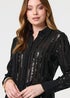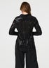 Izabel London Black Sequin Striped Sheer Long Sleeve Shirt