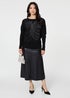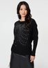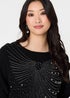 Add extra sparkle to your look with this embellished jumper. It has eye-catching sequins and diamantes on the front, along with batwing sleeves and a spacious relaxed fit. Wear it with black faux leather for a smart, festive look.