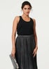 Dress for a special occasion in this eye-catching skirt, complete with beautiful glittery mesh. It has an elasticated high waist, pleats and a layered shape. The midi length hem means this skirt looks elegant with ankle boots or heels.
