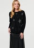 Izabel London Black Sparkly Star Front Batwing Sleeve Jumper