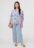 Izabel London Blue Abstract Curve Hem 3/4 Sleeve Shirt