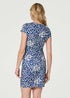 • Izabel London Blue Animal Print Ruched Short Wrap Dress