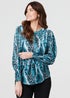 Izabel London Blue Animal Print Semi Sheer Blouse Top