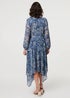 Izabel London Blue Animal Print Sheer Hanky Hem Midi Dress