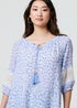 Izabel London Blue Animal Print Tassel Bardot Neck Blouse