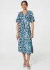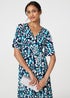 Izabel London Blue Animal Print V-Neck Midi Wrap Dress