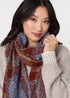 Stay warm when you wrap up in this oversized scarf. It has a large rectangular shape so you can drape it around your neck, wear it over your shoulders as a poncho, or add around the neckline of a jacket. It has a stylish fringed edge as an extra finishing touch.