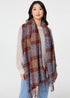 Izabel London Blue Checked Print Oversized Fringe Scarf