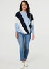 Izabel London Blue Colour Block Print Batwing Sleeve Jumper