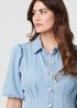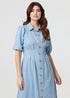 Learn moreLook smart at the office or a casual day out in this elegant denim dress. It's made from comfortable 100% cotton and has flattering ruches on the front to cinch in your waist. It's also finished with puff sleeves, a collar and button details. The curved hem will look great paired with boots in the autumn.