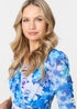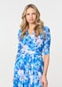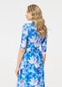 • Izabel London Blue Floral Mesh Pleated Faux Wrap Midi Dress