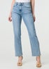 Elevate a casual look with these classic jeans. They're made from a comfortable stretchy cotton blend material, with a straight fit that will suit all body types. The back pocket is decorated with a metallic floral patch and they fasten with a button at the waist. Wear these jeans with heels for an evening out, or go casual with a t-shirt instead.