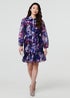 Izabel London Blue Floral Tie Waist Mini Shirt Dress