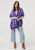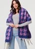 Izabel London Blue Houndstooth Print Oversize Fringed Scarf