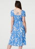 Izabel London Blue Leaf Print Smocked Midi Dress