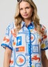 Izabel London Blue Printed Contrast Trim Relaxed Shirt