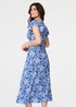 Izabel London Blue Printed Frill Cap Sleeve Midi Dress