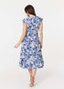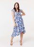 Izabel London Blue Printed Tie Waist Midi Wrap Dress