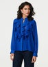 Izabel London Blue Ruffled Long Sleeve Semi Sheer Blouse