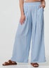 These lightweight trousers are perfect for sunny days. They're made from a breathable viscose and cotton blend material and have a wide leg fit, keeping you cool and comfortable all day long. The high waist and front pleats will have a tummy-flattering look on all figures.