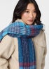 Izabel London Blue Tartan Print Fringed Oversized Scarf