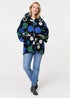Izabel London Blue Textured Floral Longline Hoodie Coat